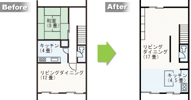 個別のキッチンとリビングをまとめてLDKに