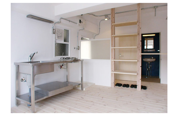 当時はまだ「リノベーション」という概念が一般に普及する前でしたから、オーナーの吉原氏とともに手探りで進めることになるのだろうな、とは予感していました。それでも、「単にキレイにするだけなら新築に住めばいい。古いものには、新しいものにはない価値があるはず」という吉原氏の想いに共感を覚え、「山王マンション」のリノベーションをスタートさせました。予算に制約もあったので、壁や床などの内装材や一部の水廻り設備は新しいものに更新しつつも、全面改装ではなく「古くて“味”のある部分」はあえて残し、昔の建物の良さを残すことで、新築にはない付加価値を備えた空間づくりを目指しました。最初のリノベーション物件となったのは407号室ですが、この部屋の天井は既存のコンクリートスラブを現しにして見せています。これも、“味”のひとつであり、賃貸物件ならではの遊びごころですね。
