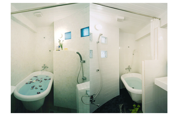 - ●水廻りスペースの天井を一段下げることで、開放感を阻害せずに空間を区切った