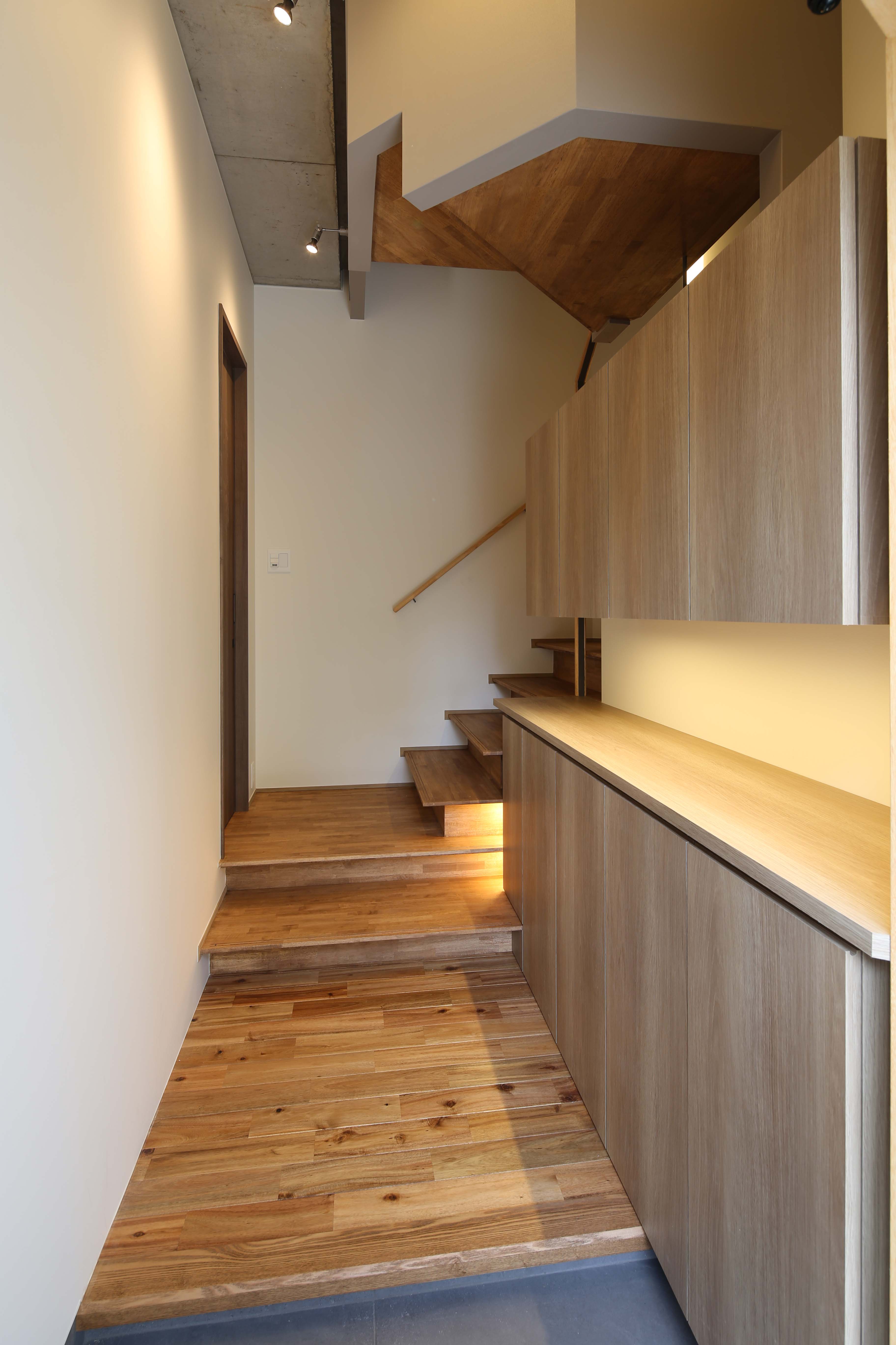 丘に埋め込まれた玄関から、舞うように折り返す階段を上ると、