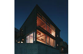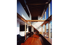 | 設計・デザインのポイント | 海の見える丘の造成地に建つ家。 吹抜のLDを中心に、海と空に向けて心の広がる建築空間を形づくる。 |