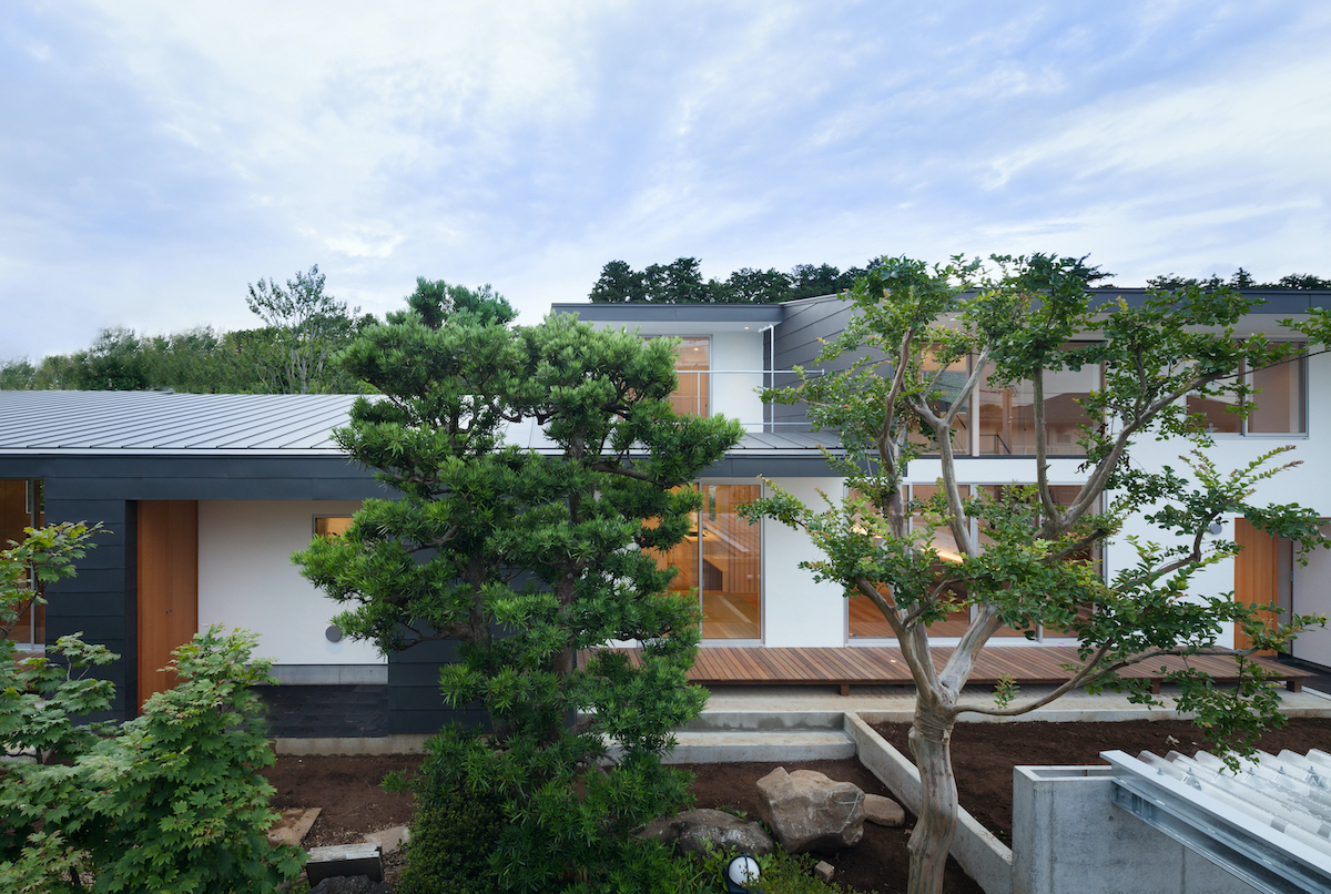| 設計・デザインのポイント | 南北の庭を楽しむという共通コンセプトを持ち、フラットな平屋棟・敷地のレベル差を生かしたスキップフロアの2階建棟という異なる構成を持つ二棟を、土間を介して繋げた、二世帯住宅です | ||