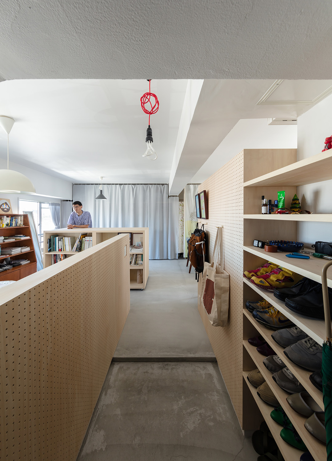 | 設計・デザインのポイント | 築50年50㎡の団地リノベーション 淀川からほど近いエリアに建つ11階建ての団地リノベーションプロジェクト。 面積は約50㎡で、元々は4部屋に区切られていました。 今回の計画では、より開放的な空間とするため、間仕切り壁を全て取り払いワンルームとしました。 |