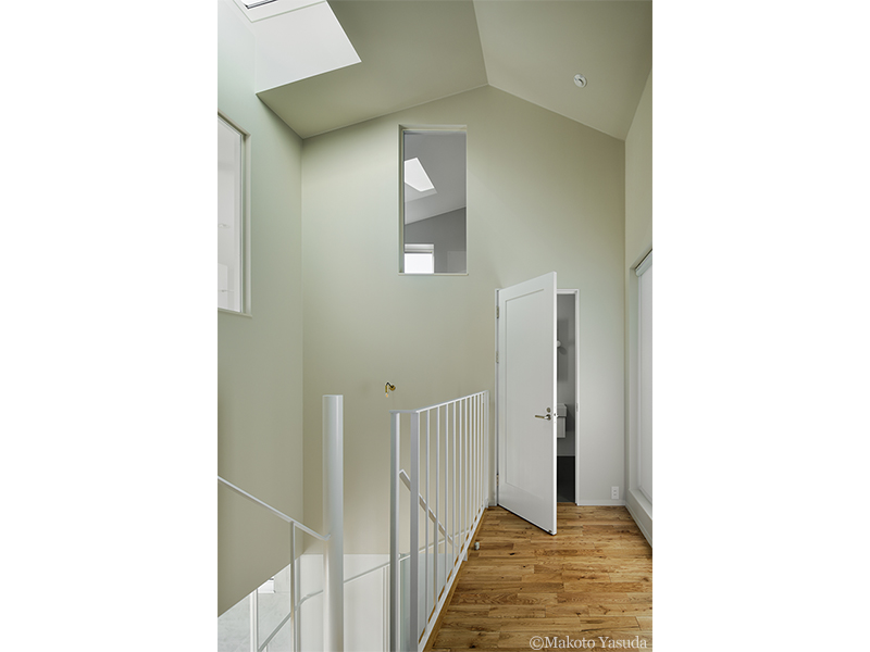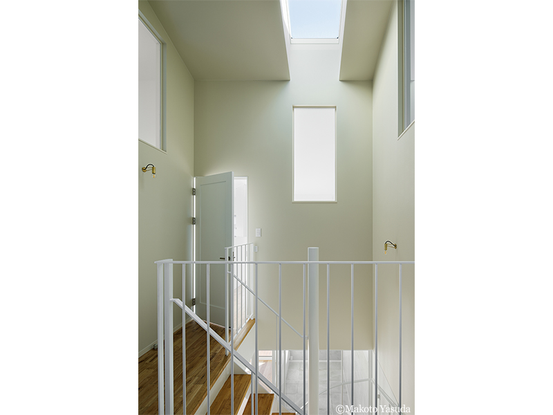 トップライトから青空が見える階段室