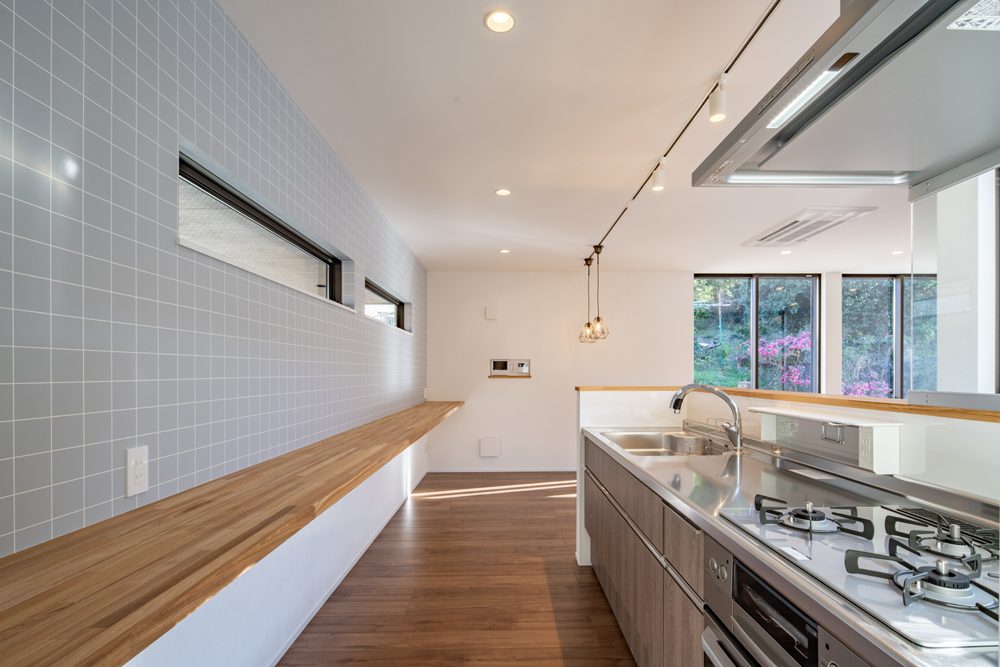 キッチンからリビング・ダイニング、バルコニーのすべてが見える