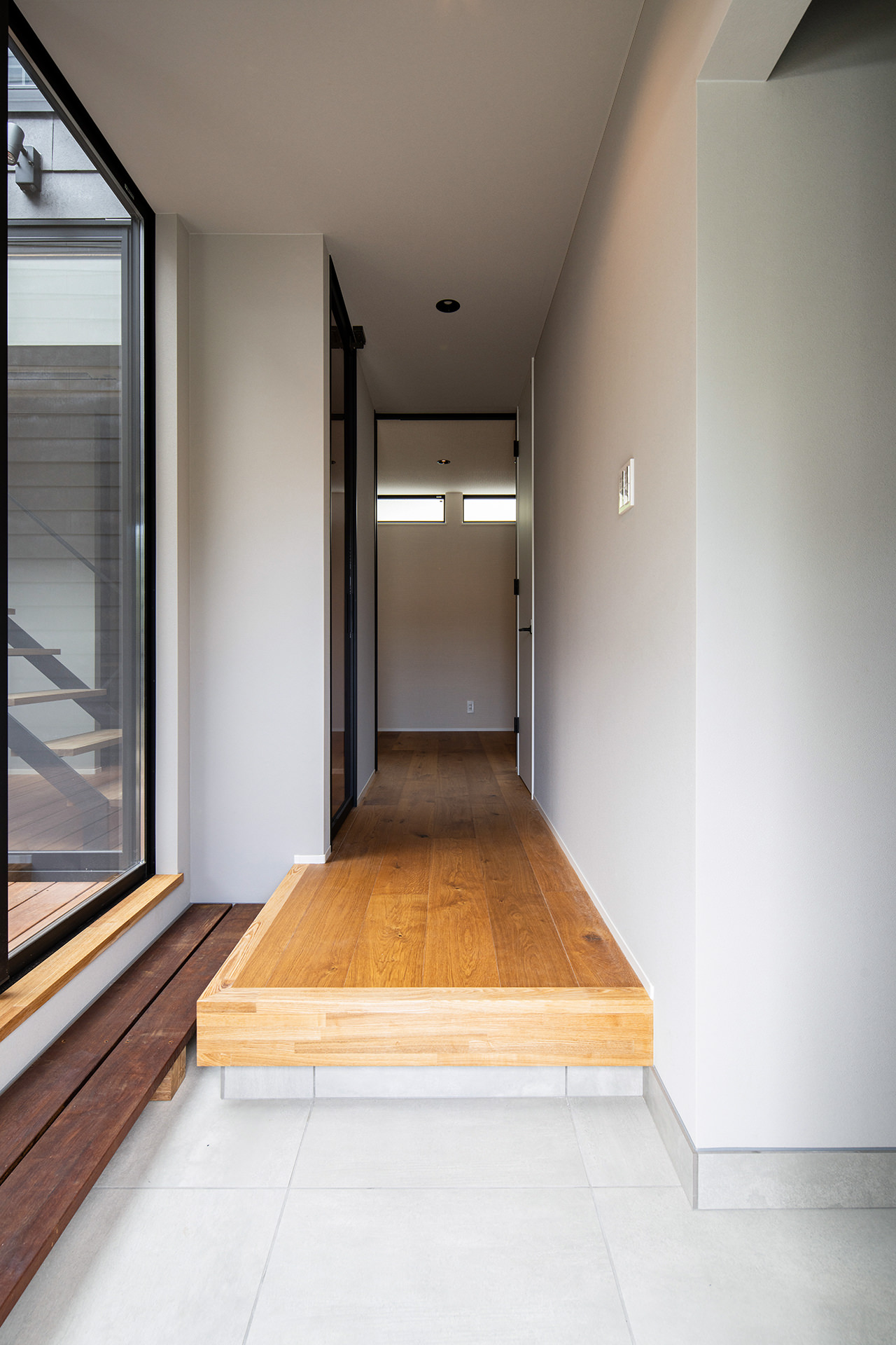 | 設計・デザインのポイント | プライバシーを重視した、囲い庭(中庭)のあるプランのご提案をさせていただきました。喧騒を遮断する囲い壁は、計画立地の環境特性上、重要であったと思います。採光面では、中庭を南配置とし、中庭面には吹抜階段や掃出しサッシを設け、光を建物内部に採り入れやすいシンプルな構成としました。 | ||