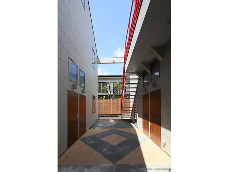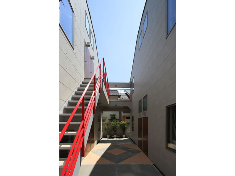 | 設計・デザインのポイント | フォーラム(中庭)と路地が、コミュニティー・生活の中心となる形態を提案した。 各戸にロフトがあるので、天井が高く、広々と感じる室内空間となった。 |