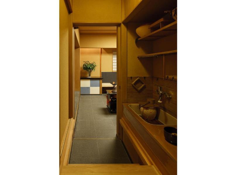 - 茶道作法に則しながらも開放感のある茶席空間とすることを心がけました。使用する材料を絞り込んで統一感を持たせていますが、これは予算を抑えることにも繋がります。また施工の難しいデザインを少なくすることで和風専用の大工ではなく、普通の大工さんが施工できるようにして予算を抑えることにも対応しました。水屋では床板を外すとミニキッチンに早変わりするなど今後の喫茶店舗への計画変更にも考慮しました。