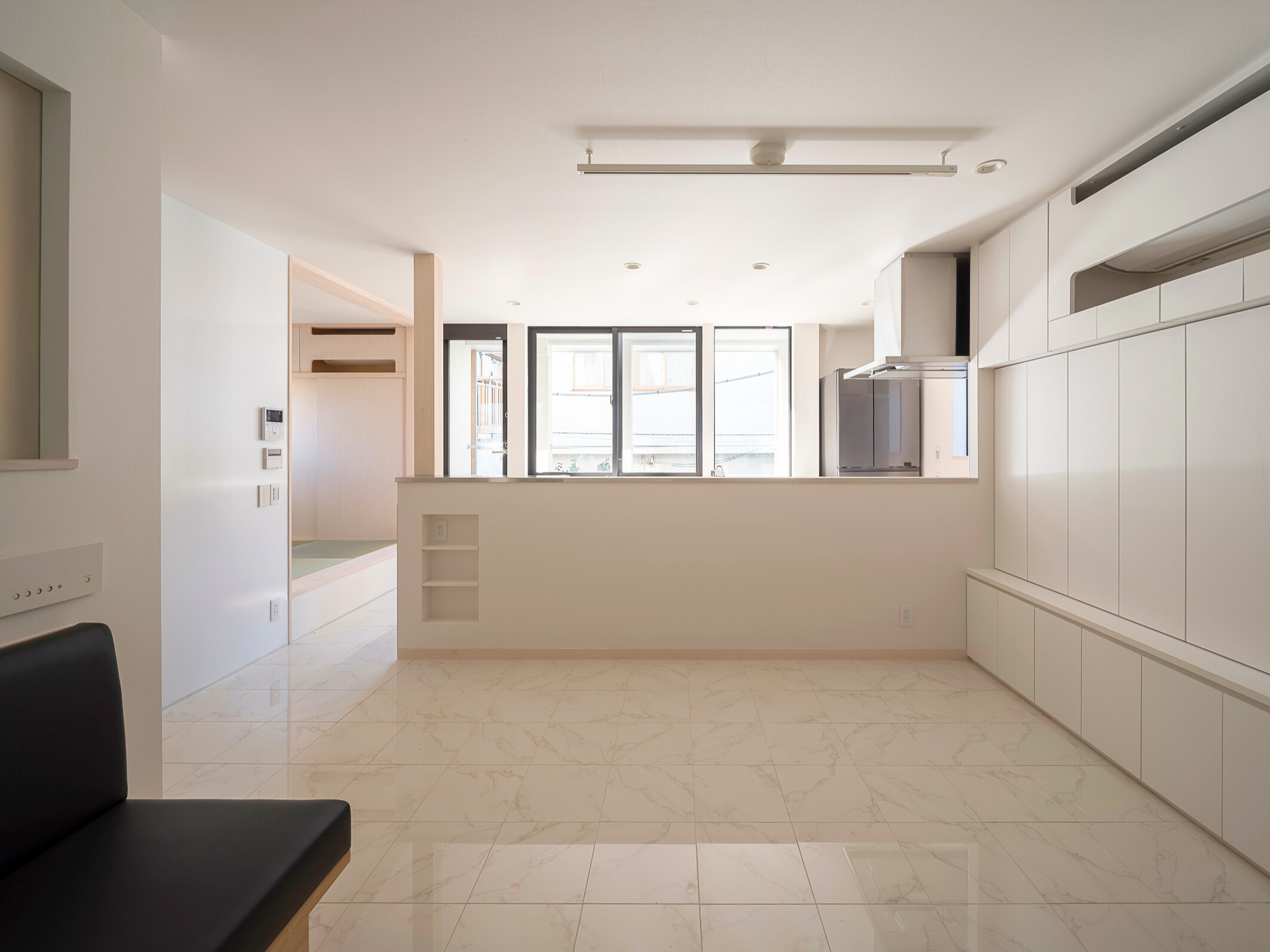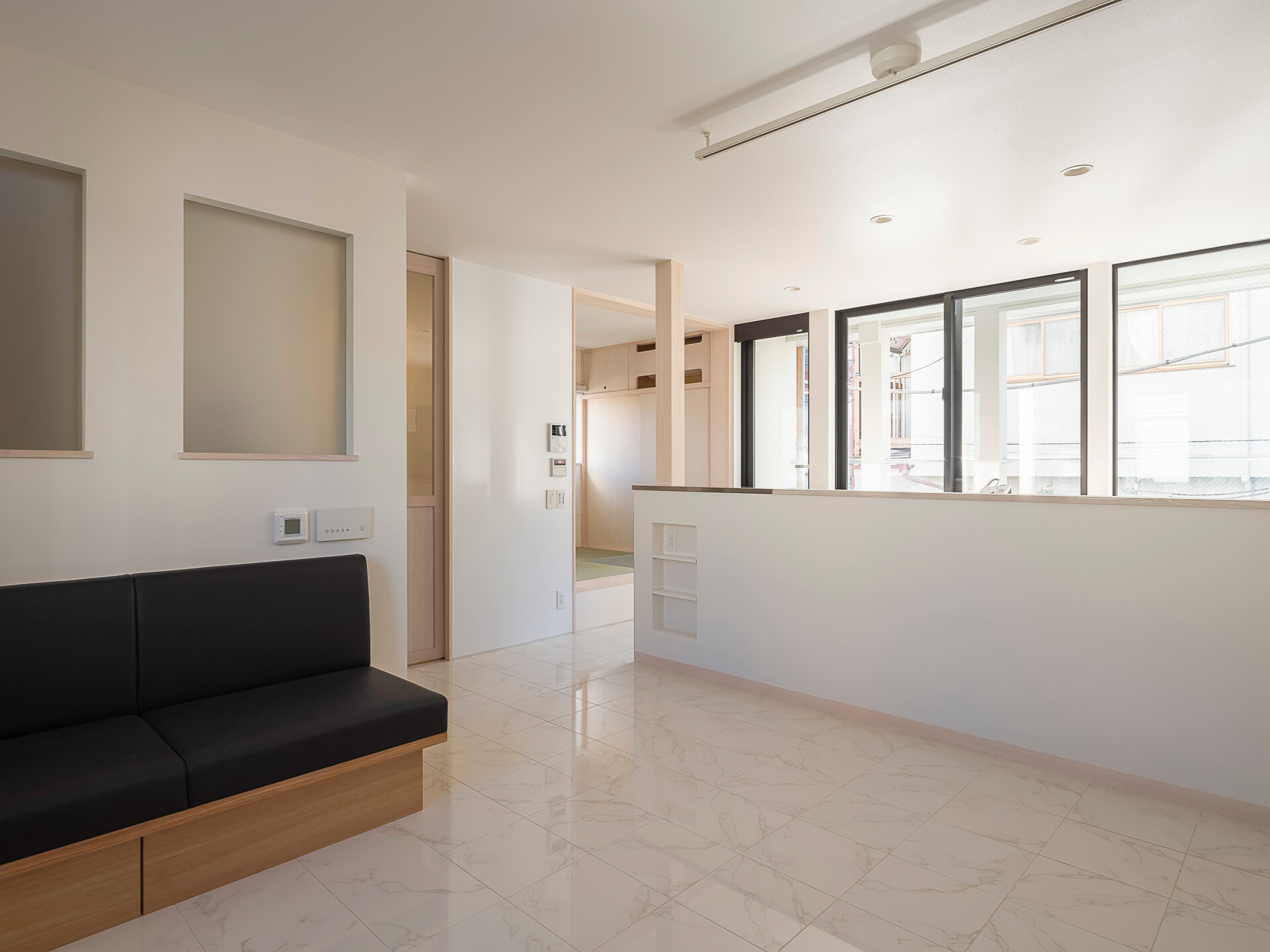 私たちは、住宅の中に「間(ま)」を作ることを大切にしています。それは単なる空きスペースではなく、心のゆとりを生むための「余力」です。駒込の家では、部屋から部屋へ移り変わる瞬間の視線の抜けや、何気ないコーナーの余白に、この「間」を忍ばせています。