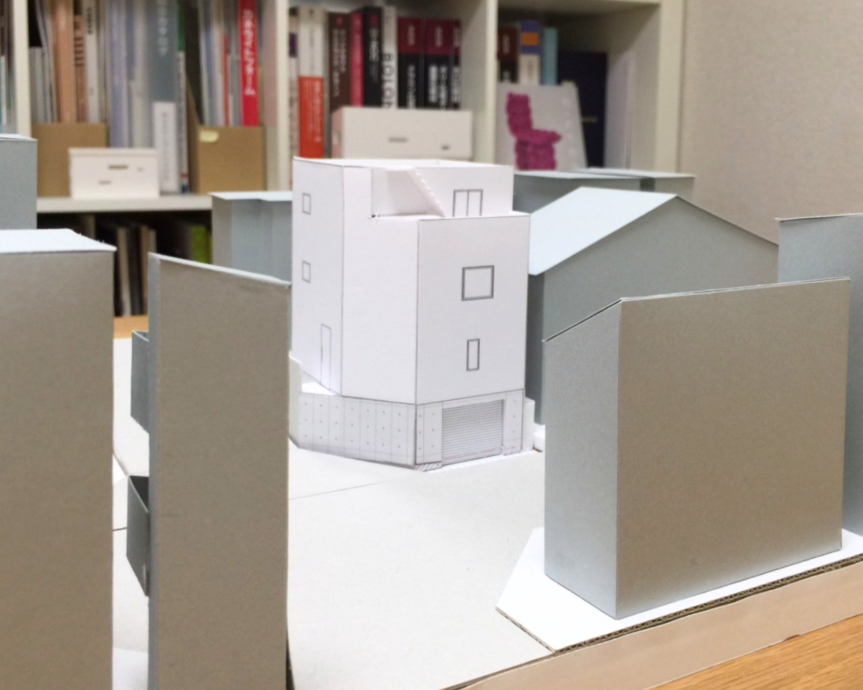 駒込の家でも、最初の模型をお見せした瞬間の建主さんの表情を今でも覚えています。平面図だけでは伝わらない光の入り方、空間の繋がり、そしてそこでの暮らしの温度。模型を囲み、カッターで窓の位置を調整したり、空間を切り刻んだりしながら、理想の輪郭を少しずつ明確にしていきました。