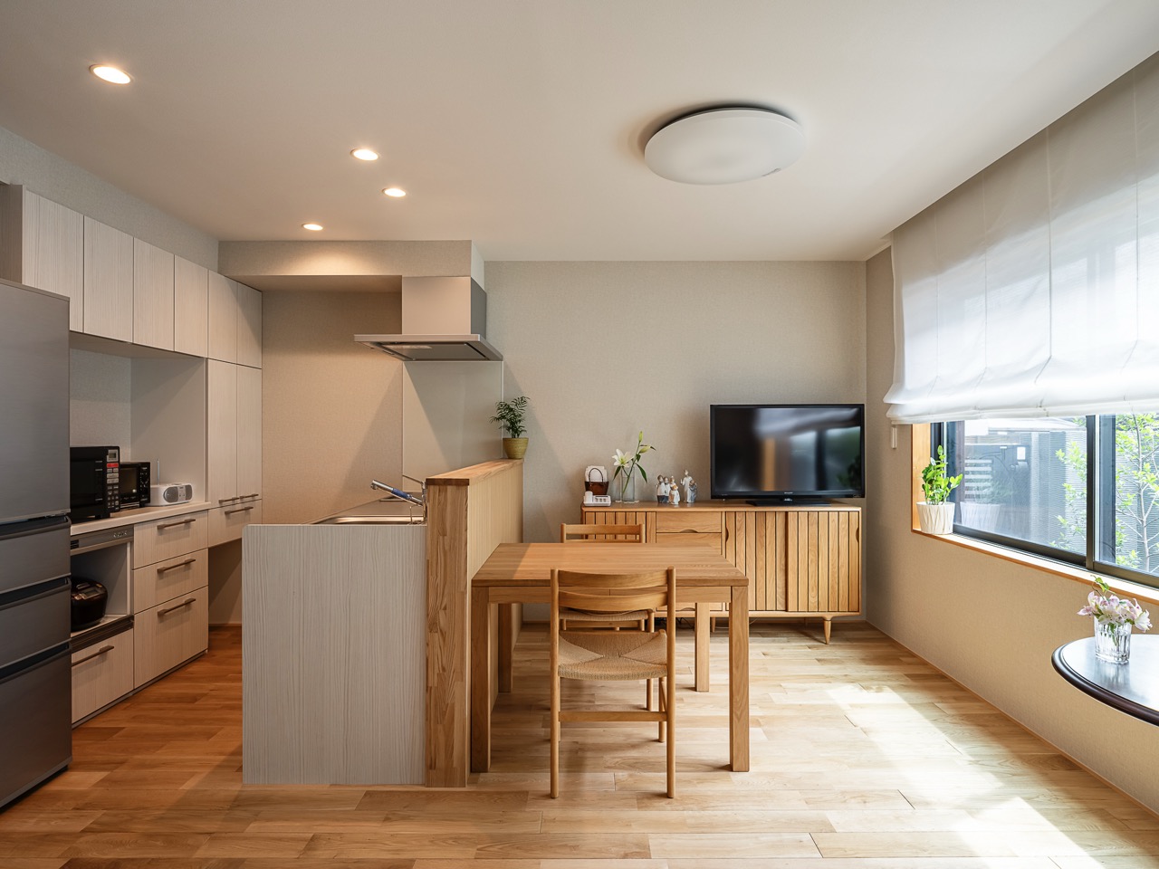 - 家族がそれぞれ思い思いの場所にいながらも、互いに気配を感じられる一室空間としています。一方で、テレワーク対応のスペースやモバイルフォンの充電スペース、夫婦個別のクローゼットやお掃除ロボのベース基地など細かく設計を詰めています。