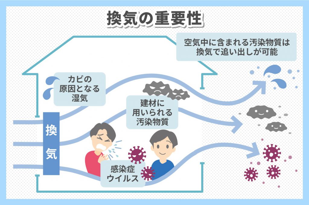 換気とは、“汚れた空気を外へ出すこと”と“きれいな空気を家じゅうに巡らせること”の両方を指します。