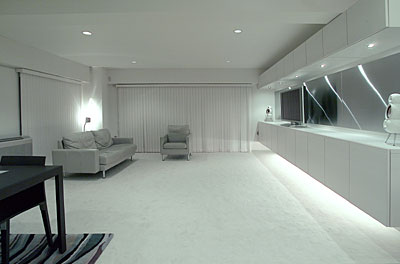 | リフォーム内容 | 全体の統一感とコンセプトイメージを与えるために廊下から続く14mの壁面に着目し、ここにステンレスパネルを採用。また、壁面収納を全体のバランスから幅広のもので壁面全体でなく、宙に浮いた2つのボックスでまとめました。 リフォーム費用の総額:750万円(キッチン工事199万円/ユニットバス工事78万円/家具工事(壁面収納・バーカウンター収納・RCカウンター収納)197万円等、その他各種工事を含んだ総額) |
