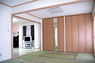 - リフォーム前は4部屋のうちの3部屋が物置化して使える状態ではありませんでした。真ん中の狭い4.5畳の和室が唯一全員が集まれる部屋でした。T様はお孫さんがもう一人生まれることになったので、この機会に間取りをそっくり変えて全員がのびのびと安心して暮らせる空間を作りたいとリフオームをご希望され、ご相談を受けました。