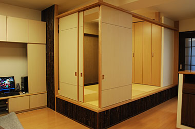 | リフォーム内容 | リフォーム総費用 880万円(下記は内訳 ※電気工事別途 ) 仮設工事22万円、トイレ27万円、解体工事35万円、電気温水器38万円、左官工事33万円、洗面化粧台工事15万円、造作工事115万円、家具工事75万円、建具工事115万円、 内装工事95万円、配管工事45万円、ウィンドトリートメント工事20万円、システムキッチン130万円、諸経費30万円、ユニットバス85万円 |