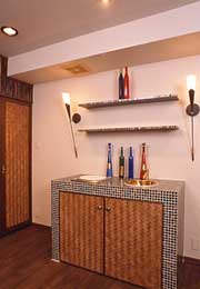 - ここが東京のマンションだということを忘れてしまいそうなほど、バリの雰囲気を再現した室内。天井の梁は、構造躯体に負担をかけないように、軽量な素材を使用しました。