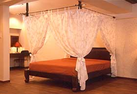 天蓋風のデザインを施したベッドは、バリから輸入したものです