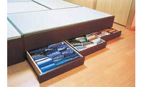 組合せが自由にできる収納畳ユニットは落ち着ける和風コーナーにもなり、大容量収納