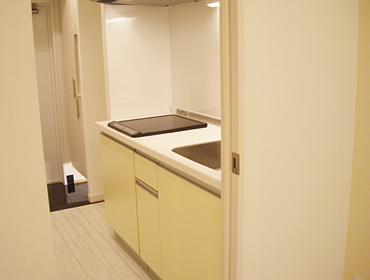 - 部屋Aのキッチン。システムキッチンはお掃除しやすいIHクッキングヒーターを採用しています。