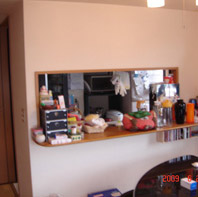 - マンションのLDKを開放的な空間へリフォームするため、対面式ではあったものの開口部が少なく閉鎖的だったキッチンの壁等を撤去して、オープンな対面キッチンへ改築しました。