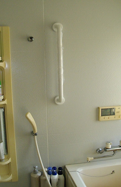 浴室の入口や浴槽のまたぎなど危険な箇所に手摺を設置。