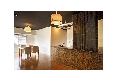 ダークブラウンの磁器質タイルが趣を深める【キッチン・システムキッチン】