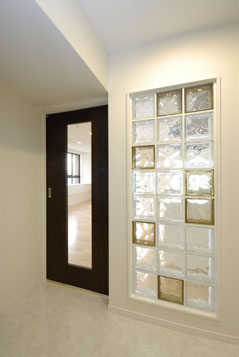 - ガラスブロックで洗練した印象へと生まれ変わった玄関。お部屋の顔にふさわしい空間となりました。