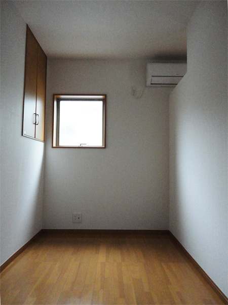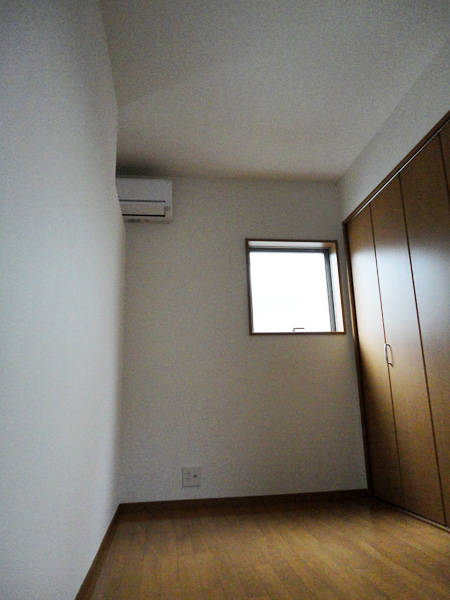 小さめの2室の居室に冷房が一台で済むよう、一部間仕切りを開口してエアコンを設置