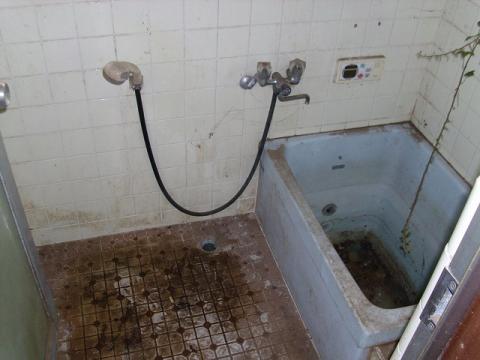 - 放置された期間が長く、非常に状態の悪かったバスルーム。草まで生えてしまう状態でした。