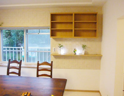 飾り棚はIKEAで購入したものを設置してリーズナブルに。