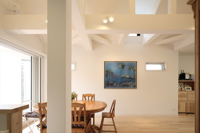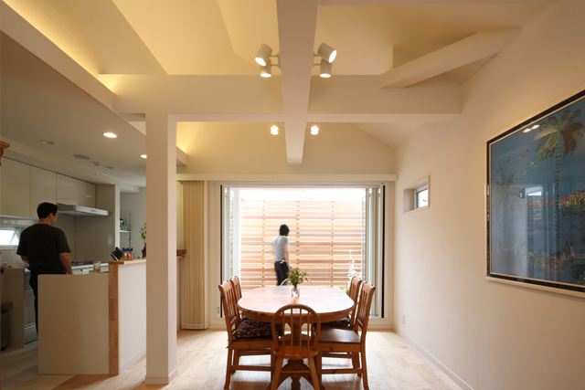 - 家族が集まるパブリックスペースを2階にし、それぞれの個室を1階に配する大胆な逆転の発想で、爽やかな光の中で家族そろって食事のできる空間に。