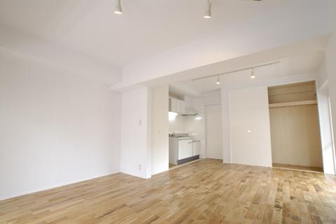 まず広さの問題は、間仕切り壁を取り払い、広い1LDKにすることで解決…