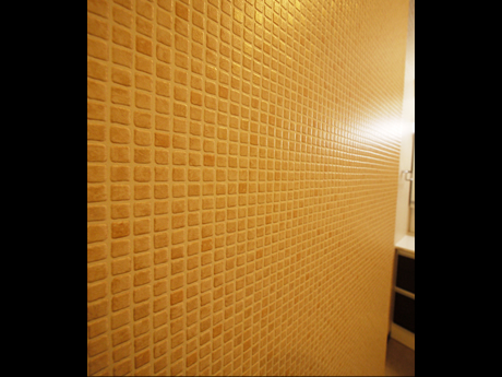 モザイクタイル調のクロスで温もりを感じさせるデザインに仕上げ