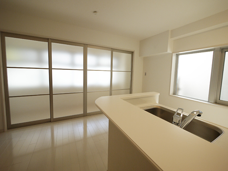 | この事例のこだわり | 以前は事務所として貸し出されていた、ご主人が所有するビル。そのワンフロアを住まいとしてリフォームすることに決めたそうです。 ベランダが無いので、洗濯物を干せるよう南側に広縁をつくりました。半透明の引き戸を閉めれば、LDKから目隠しができます。 |