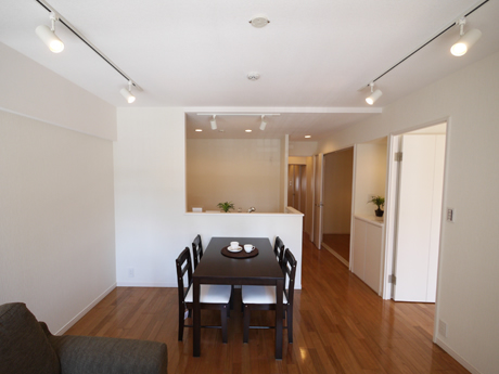 - カウンターキッチンに間取り変更。スポットライトで明るい室内に。