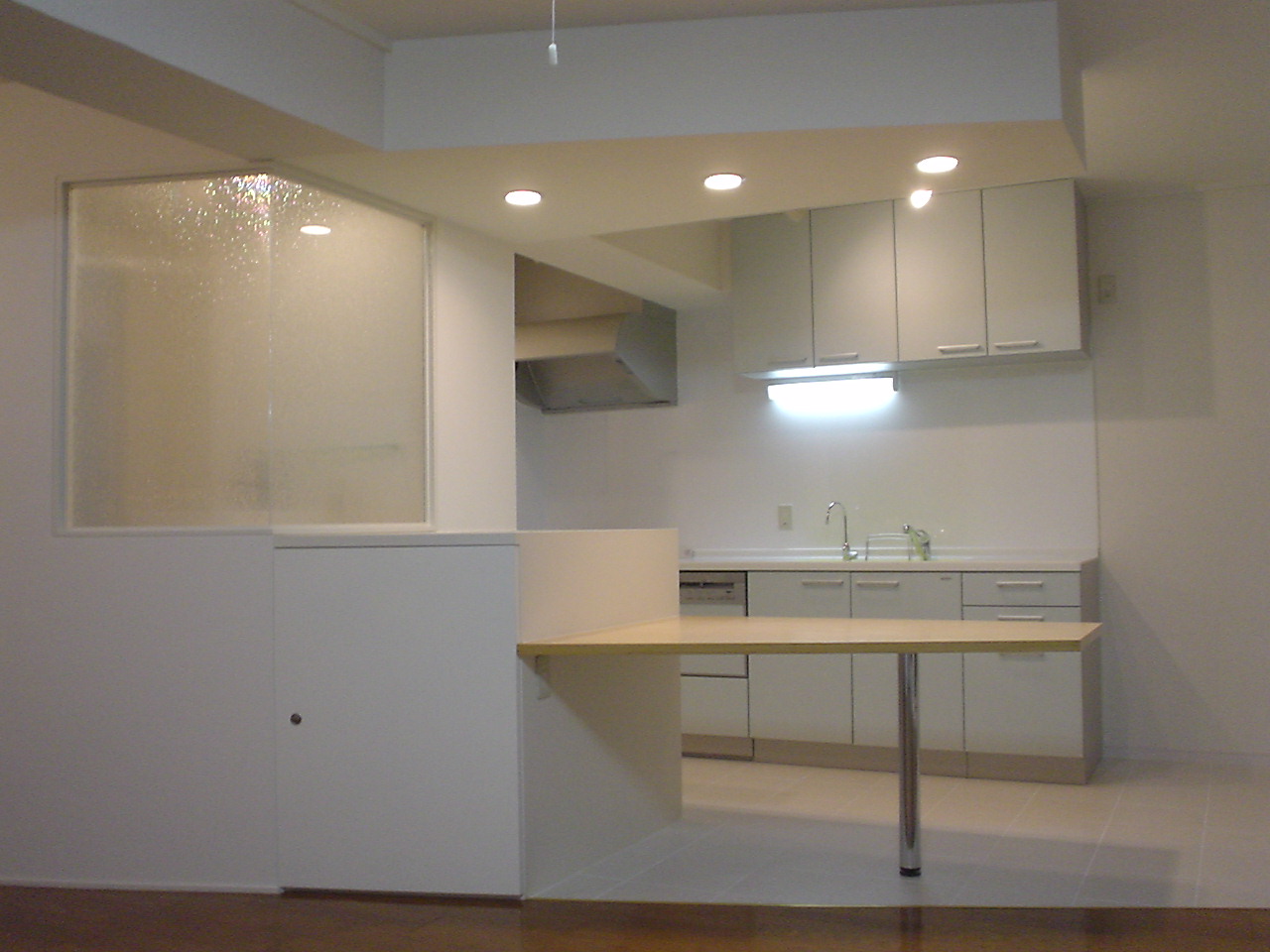 - 駅近の中古マンションを購入してのリフォーム。ご家族三人が一緒に過ごせるスペースを作りたいとのご要望がありました。また、キッチンに立っていても家族のぬくもりを感じることのできる開放的で、かつつながり感をもてるような空間にしたい。