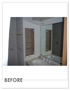 - 最新の洗面化粧台に変更。機能的な収納も設置して収納力アップ。