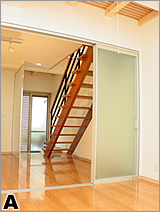 2階にはすのこ状の床が一部に採用されるなど、昼間も暗くなりがちな長屋の特徴をうまく改善しています。