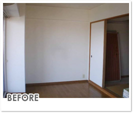 またリビングに隣接する和室を洋室に改装し、大容量物入を新設しました。