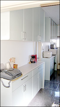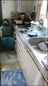 又、キッチンに合せてカップボードを裏一面に設置して、台所全体を明るい色で統一し、キッチン・カップボードの扉は鏡面仕上げ、既存タイル部分はキッチンパネルに交換する事により照明の光をより効率的に部屋全体を明るくする事が出来ました。