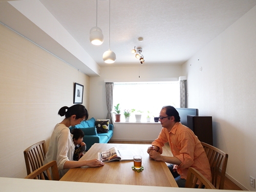 | リフォーム内容 | 築20年の中古マンションを購入したS様。傷みが比較的少ない部屋でしたが、好みの住空間にすべくリフォームを行いました。 こちらの物件は主な壁がコンクリートで造られており、壊せない壁が多くありました。その条件下で、キッチンカウンターの間口を出来る限り広げたりと、よりS様ご家族のライフスタイルに合うように変えています。 |
