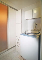 洗濯側にも収納をつけました。洗面所もこれでスッキリ