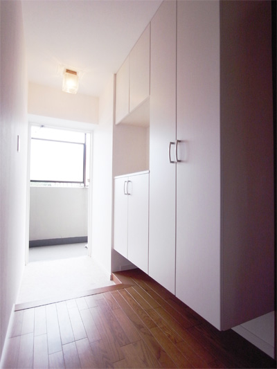 - 建具を全て交換しました。玄関収納はホワイトにし、明るい玄関となりました。