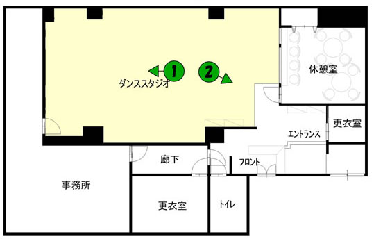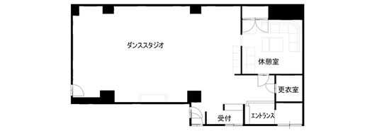 施主の要望は痛んだ床の張り替えですが、新しくした床には「根太組工法」と呼ばれる特殊な工法を用いてダンサーの膝への負担を軽減しています。また、湿気が溜まりやすい地下であることに配慮して、壁面・天井には防カビ塗装を行うなど、細かい部分にまでしっかりと気遣いが行き届いたリフォームになっています。