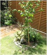- 今回は室内からの景観や、デッキの上で過ごす時間をイメージして取り組みました。ウッドデッキは耐久性の高いウリン材を使用し、アプローチに自然石を使用しています。樹脂やコンクリート製品と違い、色合いが自然のものですので、植物も自然に溶け込みます。また、室内からのフォーカルポイントに花壇を設け、季節によって違う表情が楽しめるように、草花を混植しました。