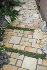 玄関からメインガーデンへと続くアプローチ