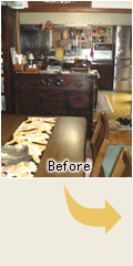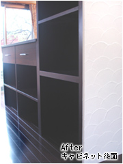 - キッチンはワークスペースが広く収納力もある、INAX(イナックス) ISTをご提案させていただきました。壁は珪藻土を使用して波をうったような模様の扇塗りに仕上げました。濃い色目の床材や家具にも調和し、落ち着いた雰囲気になりました。キッチンとキャビネットの間は床暖房を設置しました。これなら寒い冬も楽しくお料理が出来ます。