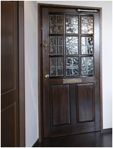 - ダイニングは、クローズ感を持たせつつコミュニケーションを確保。造作したカウンターと飾り棚にはN様のこだわりの小物がセンス良くディスプレイされカフェの雰囲気に。リビングドアは本物のアンティークをメンテナンスしました。