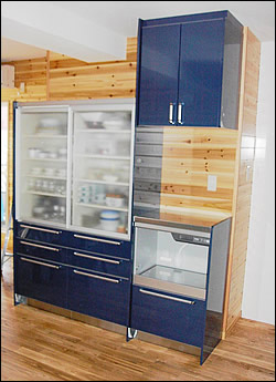 壁面には節のある杉板を使用【キッチン・システムキッチン】