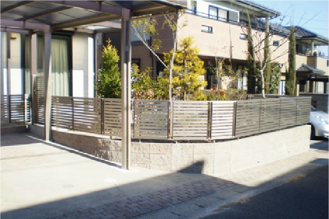 - 当初庭木だけだったお庭を、フェンスやテラス、カーポートなどで仕上げたいというご依頼をいただきました。お住まいやお庭のイメージを崩さないよう、すべての商品をデザイン重視にして、色を柿渋調やシャイングレー色で統一したことですっきりとした仕上がりとなりました。